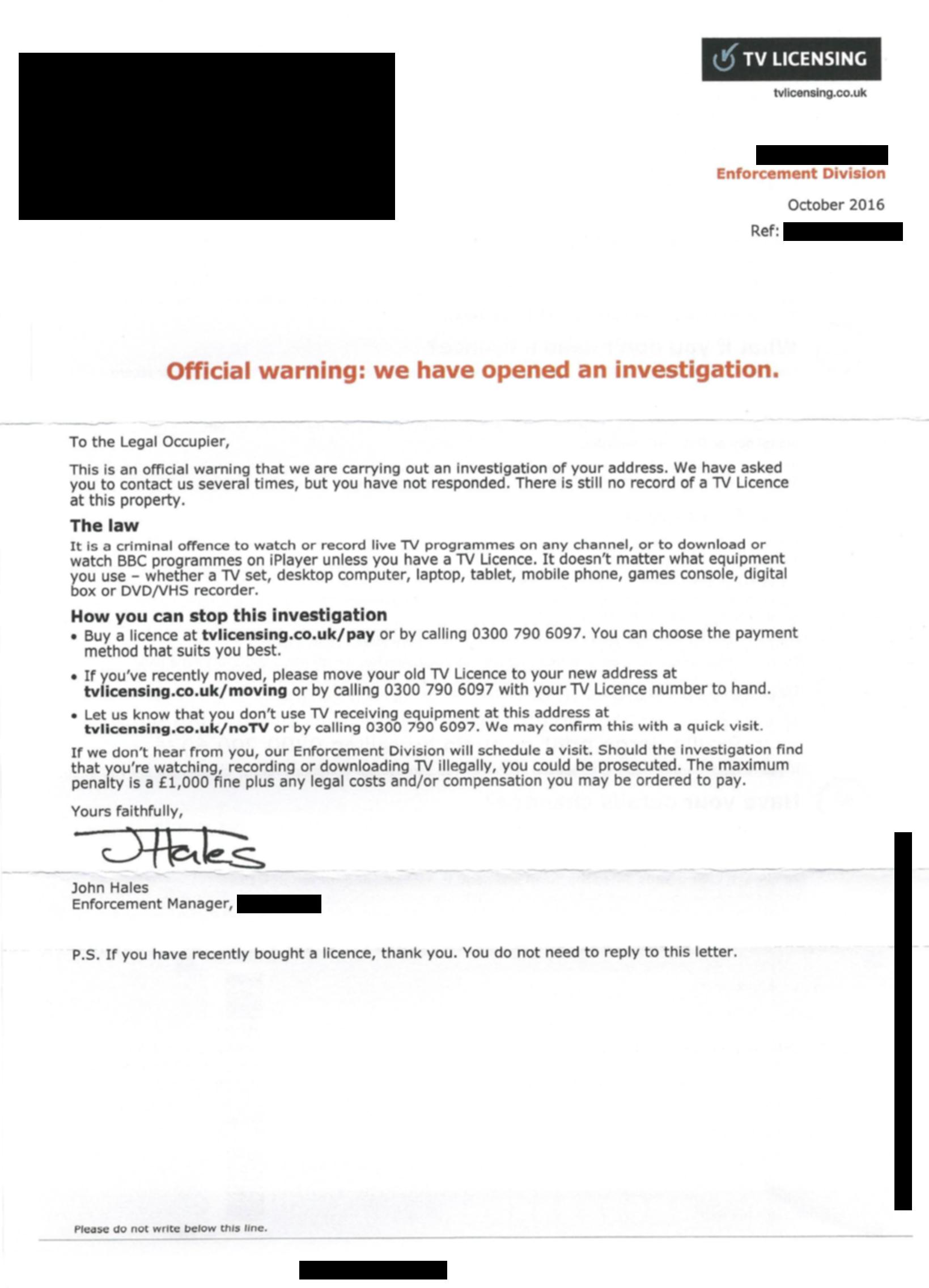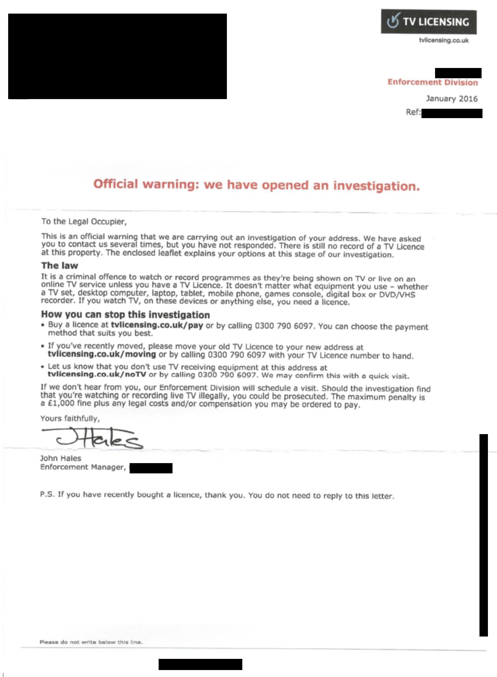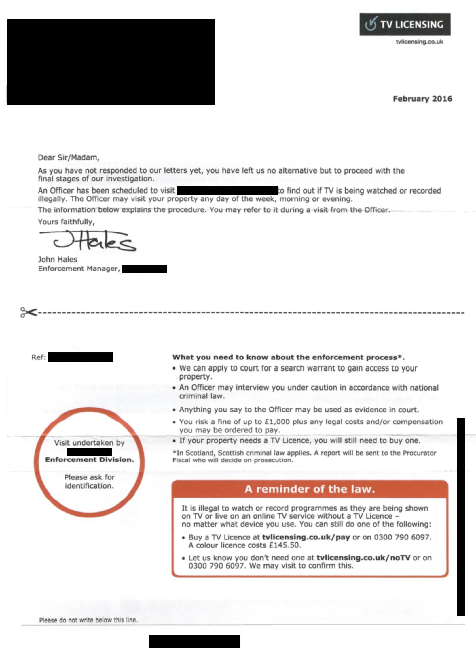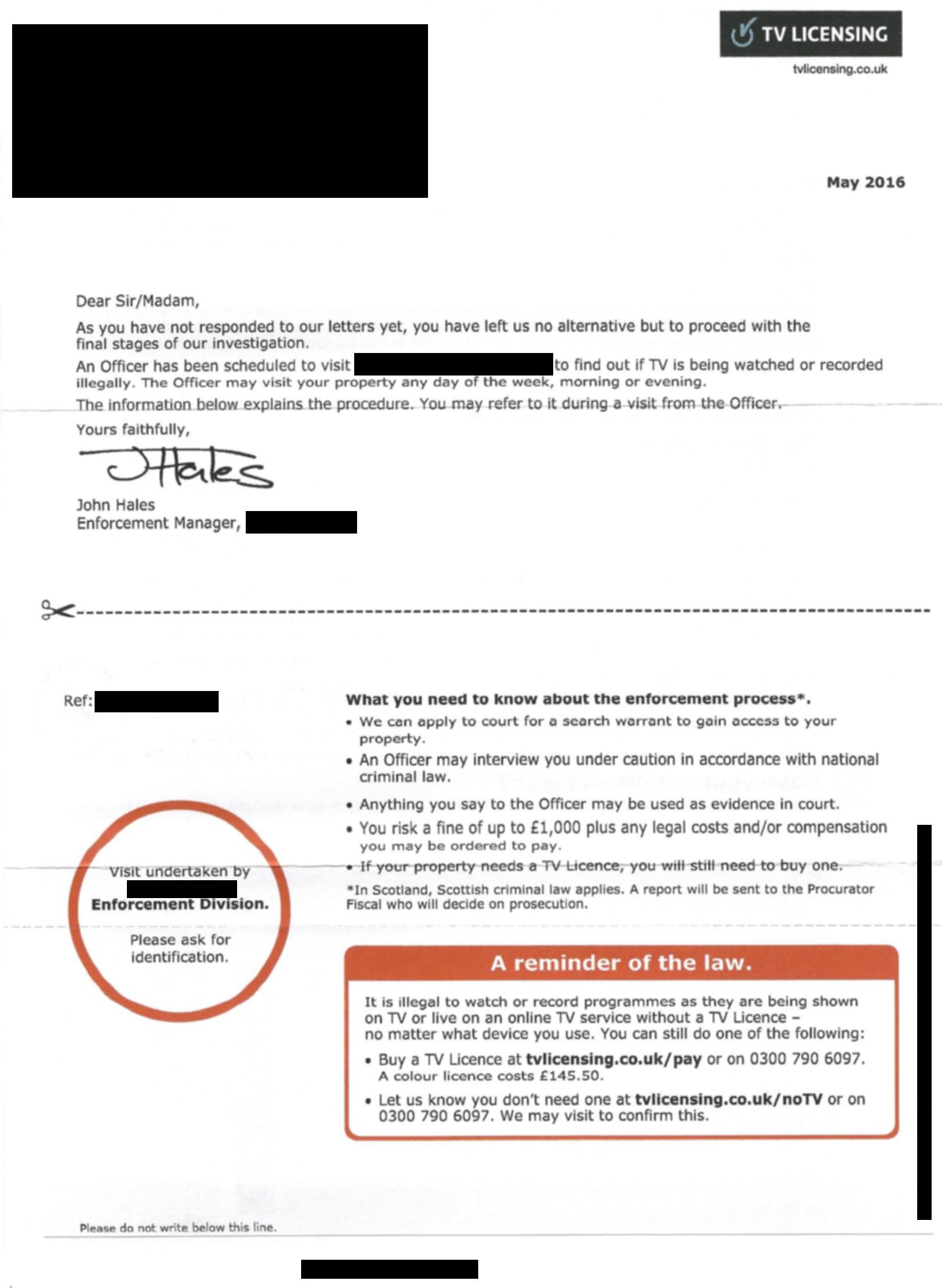 Search terms: Television license