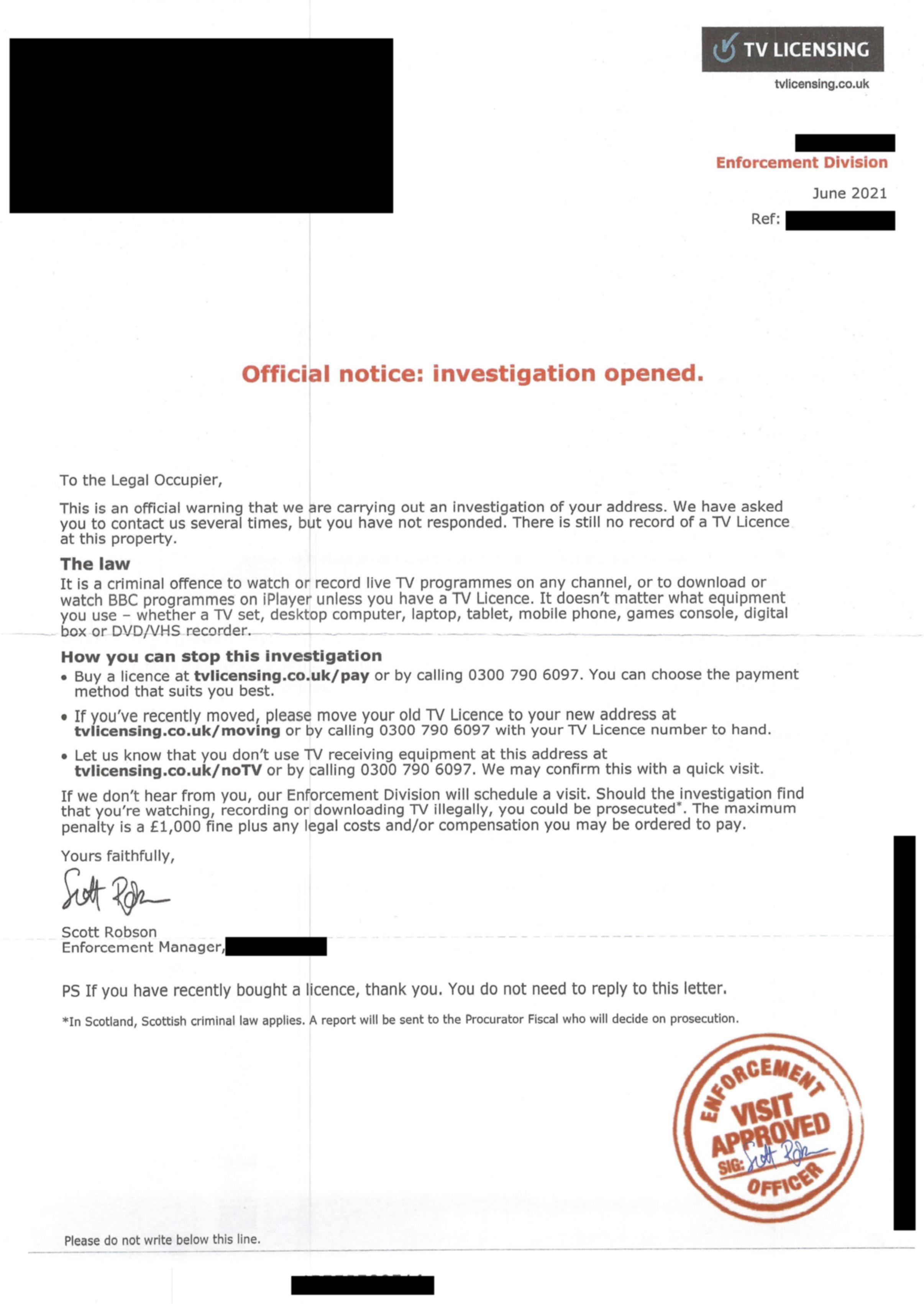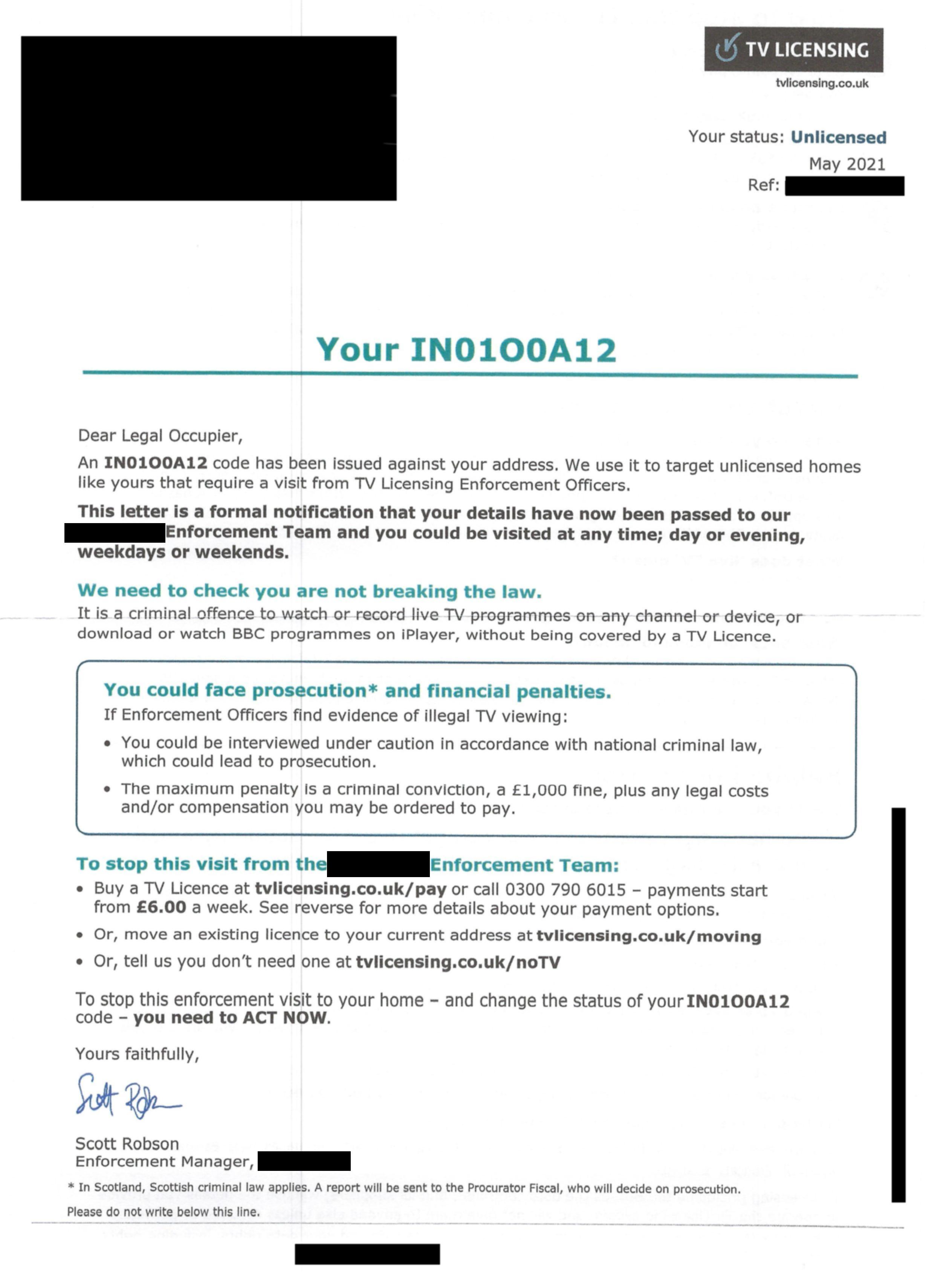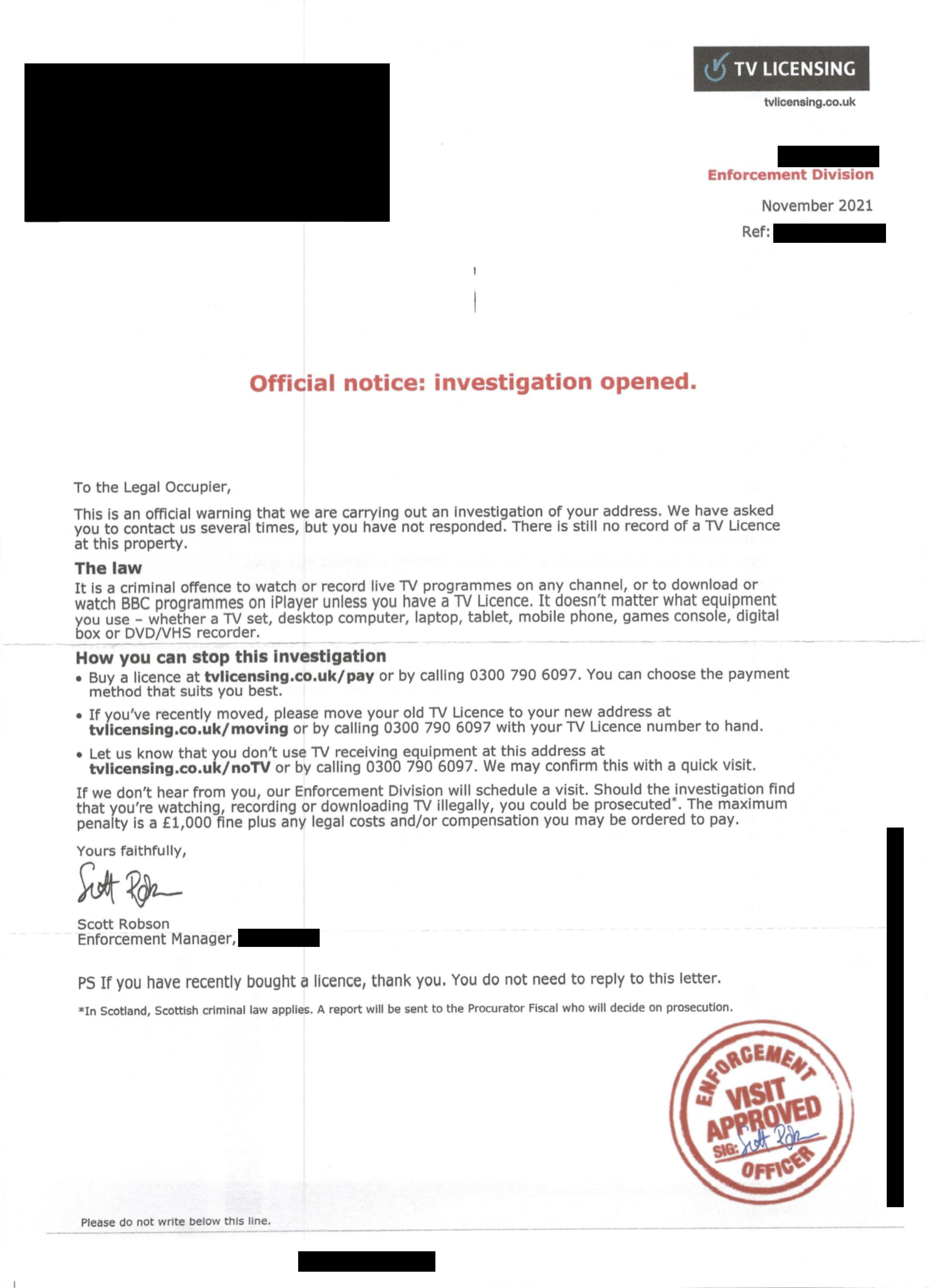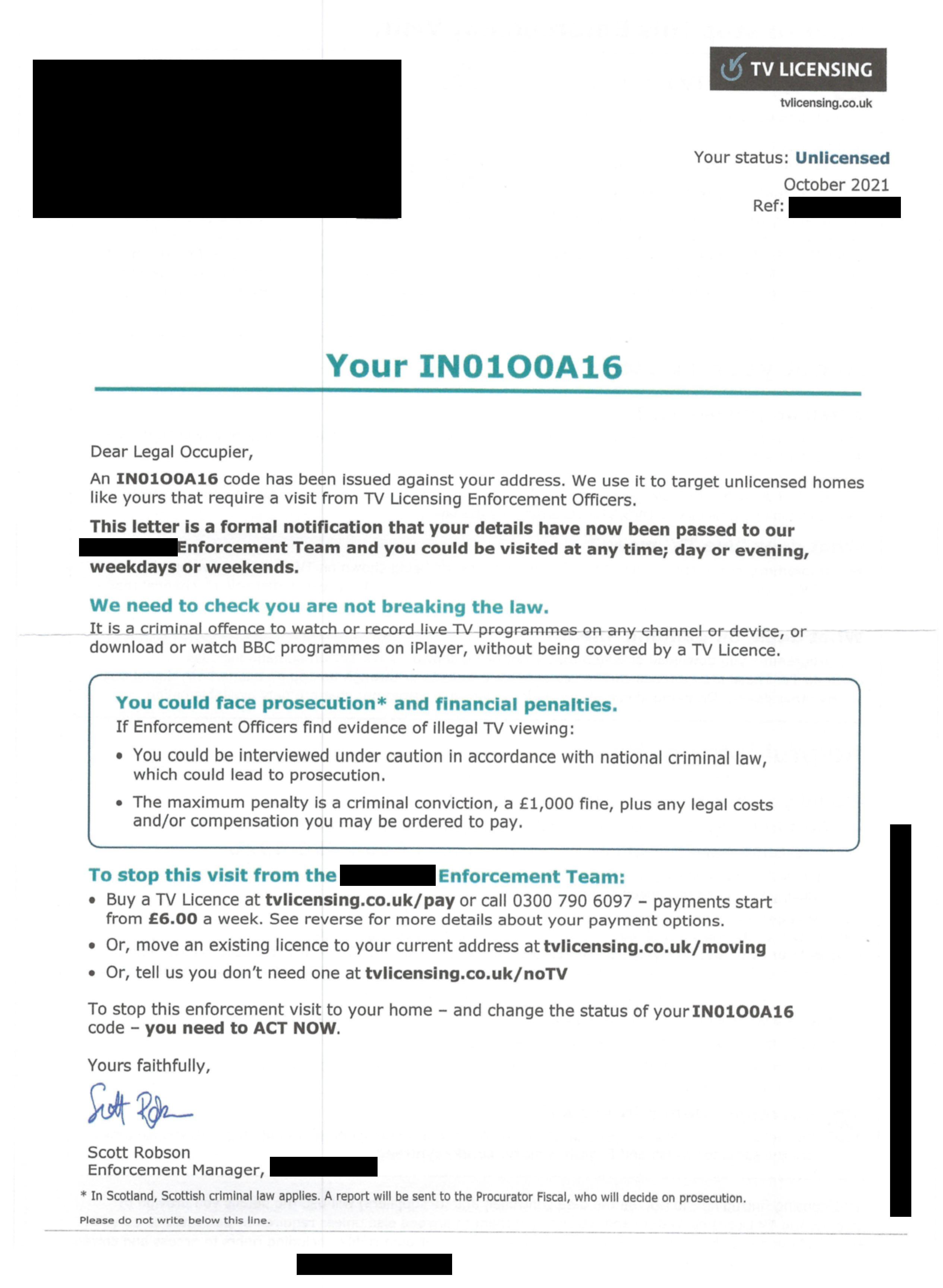 Search terms: Television license