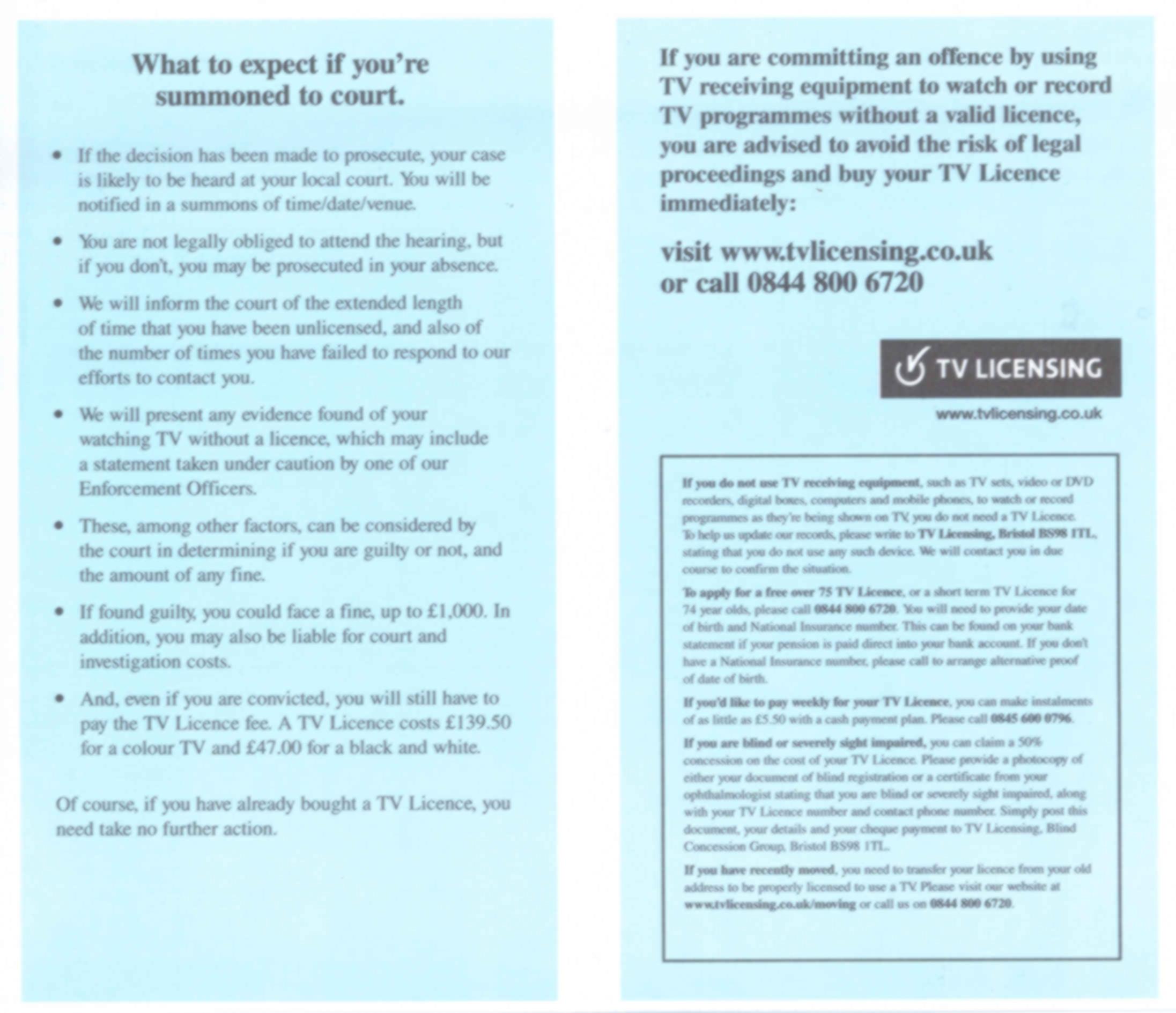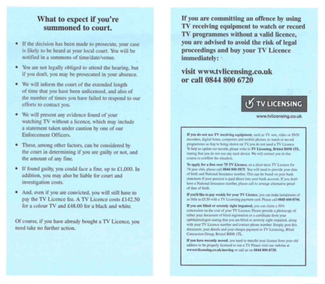 Search terms: Television license