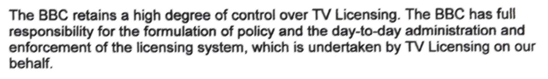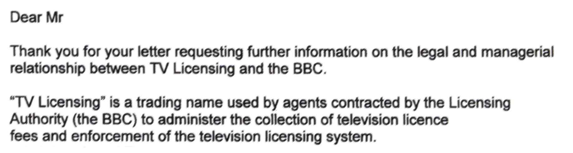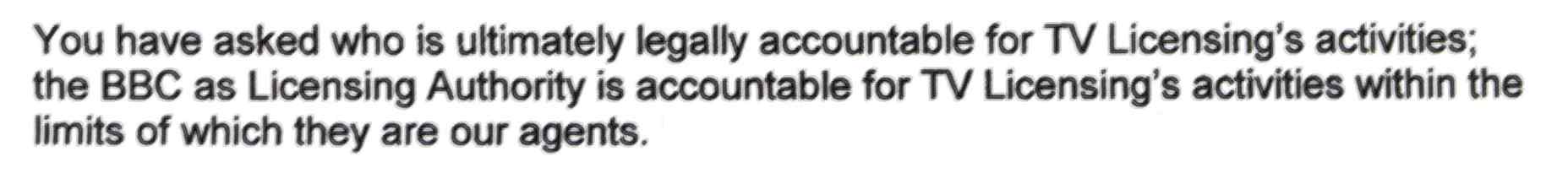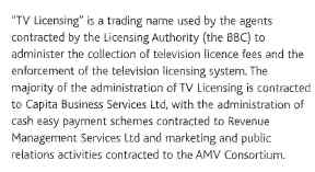 saying that "TV Licensing is the trading name used by the BBC's agents":