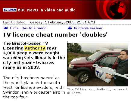 of the BBC's own website referring to TVL as the "Licensing Authority", even